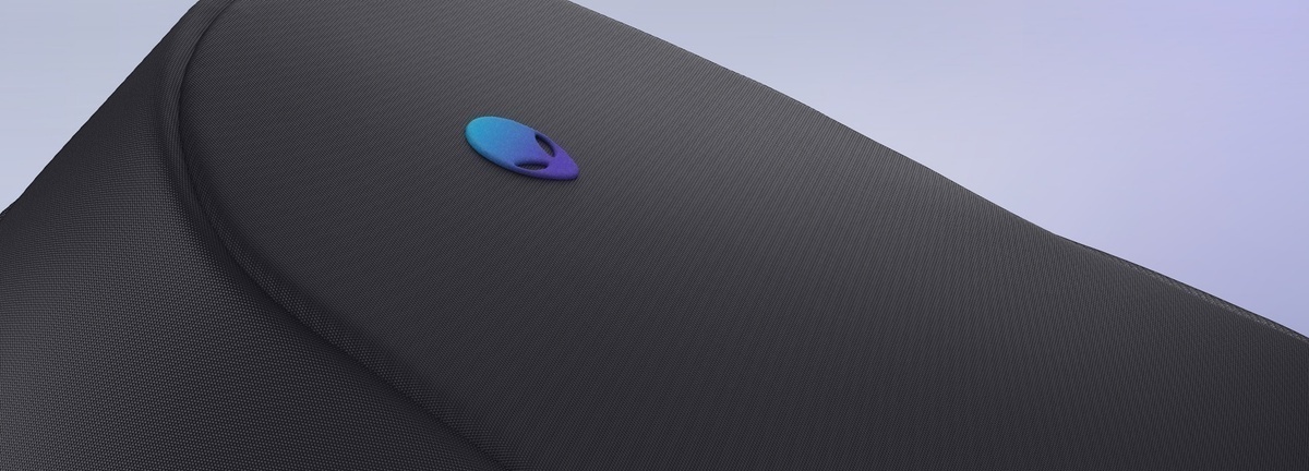 El logotipo 3D reflectante de Alienware muestra colores iridiscentes cuando se ilumina, mientras que los cierres de cremallera con aura degradada proporcionan visibilidad nocturna.