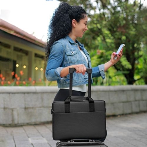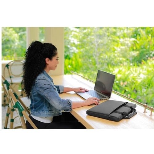 La etiqueta Dell EcoLoop™ identifica los productos que se fabrican con materiales o procesos selectos que ayudan a reducir el impacto ambiental en comparación con los métodos tradicionales de la industria. La funda Dell EcoLoop Pro 15 a 16 incluye los siguientes elementos: