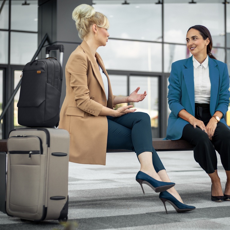 Trasládese fácilmente por aeropuertos y estaciones de tren con un adaptador de equipaje incorporado.
