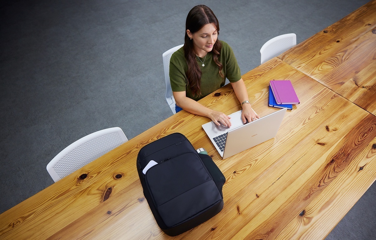 Una mochila profesional para llevar al trabajo todo lo necesario con estilo. Diseño sostenible y duradero que reduce el impacto en el medioambiente y en tu tecnología.
